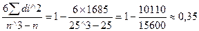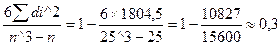 1 – общее количество ступенек, выбранное ребенком. 2 – проранжированные баллы из столбца №1. 3 – проранжированные баллы из социометрической методики “Выбор в действии”. 4 – разница рангов столбцов № 3 и № 2. 5 – возведение в степень. По формуле Спирмена рассчитаем коэффициент корреляции самооценки и социометрического статуса: P1=1- где di – разность рангов самооценки и социометрического статуса. n – число испытуемых. Таблица 9