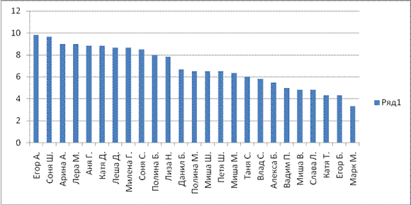 Рисунок 4 – Оценка воспитателей по методике ”Каков ребенок во взаимодействии с окружающими детьми” Проведем корреляционные анализ оценок воспитателей и самооценок детей. Таблица 10