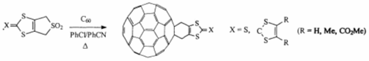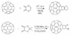 [2+2]-Циклоприєднання між фулереном і дегідробензолом, що генерується з антраніловою або 4,5-диметоксиантраніловою кислотою, дає суміш моно-, біс- і поліаддуктів.