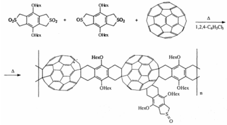 Цей же підхід використаний для отримання фулеренвмісних високомолекулярних сполук, для чого використовували похідну біс(бензоциклобутена):