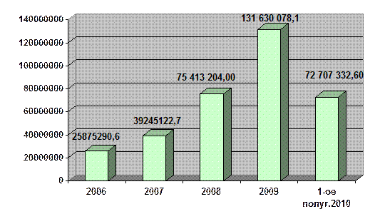 Рисунок Ж.1 – Данные о динамике выплаты страхового возмещения по добровольному страхованию автотранспортных средств физическихлиц на страховом рьнке Республики Беларусь за 2006 – 1-оеполугодие 2010 годы, в тыс.руб. Примечание – Источник: собственная разработка на основе [8, 9].