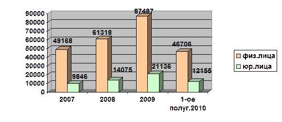 Рисунок И.1 - Сведения о количестве заключенных договоров по добровольному страхованию автотранспортных средств физических и юридических лиц настраховом рынке Республики Беларусь за 2006-1-ое полугодие 2010 годы Примечание – Источник: собственная разработка на основе [8, 9]. ПРИЛОЖЕНИЕ К