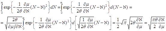 Аналогичным образом осуществляется пересчет и для других переменных состояния и параметров термодинамической системы. Как и в рассмотренном ранее каноническом распределении, для большого канонического распределения можно показать, что Воспользуемся аналогией с выполненным в предыдущей теме расчетом ширины канонического распределения по энергии. Тогда ширина распределения по N