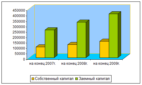 Рис. 3. Динамика собственного и заемного капитала ООО « Строй Комплект» за 2007-2009г.