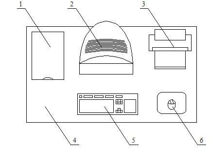1 – сканер, 2 – монитор, 3 – принтер, 4 – поверхность рабочего стола, 5 – клавиатура, 6 – манипулятор типа «мышь». Рис. 4.2 На рис. 4.3 показана схема реального размещения основных и периферийных составляющих ПК на рабочем столе инженера-программиста. Реальное размещение основных и периферийных составляющих ПК.