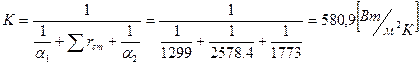 Коэффициент теплопередачи: