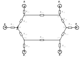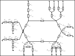 В целом, схема замещения останется той же, что и для прямой последовательности, изменятся лишь значения сопротивлений нулевой последовательности Х2 (рис.23). Токи прямой и обратной последовательностей протекают по одним и тем же путям. Точки приложения ЭДС источников заземляются, т.к. ЭДС обратной последовательности генерирующих ветвей условно принимают равными нулю.