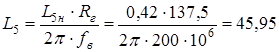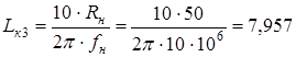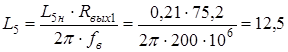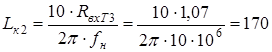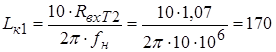 Найдём Lк , исходя из условий, что на нижней частоте полосы пропускания её сопротивление много больше сопротивления нагрузки. В нашем случае:
