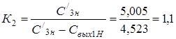 Найдём коэффициент усиления входного каскада по формуле (2.40), но здесь Rвх.н – входное сопротивление входного транзистора, нормированное относительно сопротивления генератора: