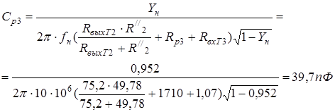 Найдём коэффициент усиления предоконечного каскада по формуле (2.40), где Rвх.н – входное сопротивление предоконечного транзистора, нормированное относительно выходного сопротивления входного транзистора: