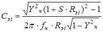 где Rнор и wнор – сопротивление и частота, относительно которых производится нормировка, L, C, R – значения нормируемых элементов Lн , Cн , Rн – нормированные значения. Нормируем Свых (относительно Rн и wв ) в соответствии с (2.31) СвыхН =Свых × Rн × wв =5,1×10-12 ×50×2p×200×106 =0,32 В таблице 7.1 [4] находим нормированные значения L1 и С1 , соответствующие найденному СвыхН . Ближайшее значение СвыхН = 0,285, ему соответствуют: С1Н = 0,3 L1Н =0,547 n =1,002. Денормирование элементов производится по следующим формулам: