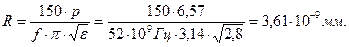 где f -частота в ГГц; R -радиус слоя в мм; р -параметр, который зависит от типа колебаний Н101 , Е101 . Если на известно, что р=6,57, а f=52 ГГц, то выразив из формулы (5) R и подставив данные значения в полученное выражение можно найти радиус слоя янтаря: