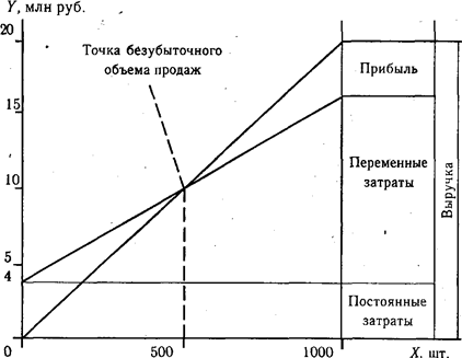 Нетрудно заметить, что отношение постоянных расходов к общей сумме маржинального дохода и есть тот коэффициент, который определяет место расположения точки критического объема реализации продукции на графике.