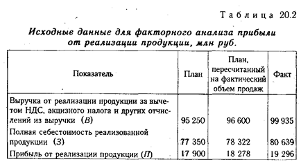 Расчет влияния этих факторов на сумму прибыли можно определить, используя данные табл. 20.2.