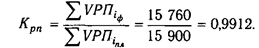 Сначала нужно найти сумму прибыли при фактическом объеме продаж и плановой величине остальных факторов. Для этого следует рассчитать коэффициент выполнения плана по реализации продукции (Крп),