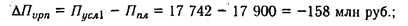 необходимо плановую прибыль умножить на процент перевыполнения (недовыполнения) плана по реализации продукции в оценке по плановой себестоимости или в натурально-условном исчислении (15 760/15 900 х 100 - 100 = -0,88 %) и результат разделить на 100: