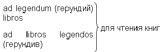 Accusat+vus герундия употребляется с предлогом ad (иногда с предлогом ob ) в значении цели действия: ad legendum для чтения . Ablat+vus герундия употребляется: · в значении ablat+vus modi или ablat+vus instrumenti: Gutta cavat lapidem non vi, sed saepe cadendo. - Капля долбит камень не силой, а частым падением;