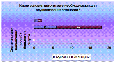 Рисунок П.2.25 - Диаграмма распределения ответов на вопрос "Какие условия вы считаете необходимыми для осуществления эвтаназии?" среди лиц мужского и женского пола