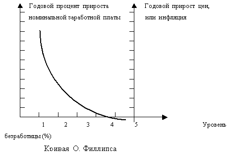 Сам О. Филлипс крайне осторожно подошел к интерпретации выведенной им зависимости, указывая, что для окончательных выводов необходимо более детальное исследование взаимосвязи между безработицей и ставками заработной платы. Однако последователи Дж. М. Кейнса стали увязывать кривую О. Филлипса с ростом цен, а, следовательно, с инфляцией. На оси ординат стали откладывать уже не прирост номинальной заработной платы, а прирост цен, уровень инфляции, полагая, что рост зарплаты автоматически ведет к повышению цен, к инфляции. Теперь для увеличения занятости стали рекомендовать увеличение инфляции в пределах управляемости. Новую интерпретацию ситуации на рынке труда дали монетаристы, которые разработали теорию сдвигов кривой Филлипса , или акселерационную модель . Графически это выглядит следующим образом: