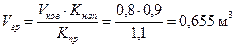 Для производства работ комплект машин и механизмов принимается I вариант, так как показатели этого комплекта выгоднее и экономичнее по сравнению с комплектом машин и механизмов I I варианта. 3.3. Подбор автосамосвалов для доставки песка при устройстве основания трубопровода . 1. Объем песка в плотном теле в ковше экскаватора: