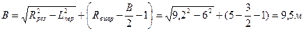 Максимальная ширина лобовой проходки экскаватора ЭО-651по верху при односторонней выгрузке грунта составляет: Rрез - наибольший радиус резания, (м); Lпер - длина рабочей передвижки экскаватор, (м); Rвыгр - наибольший радиус выгрузки, (м);В – ширина отвала грунта, (м)