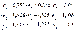 Разделим каждый член каждого уравнения системы на соответствующие коэффициенты при В результате этой процедуры (деления) получим новую систему уравнений с тремя неизвестными, в которой коэффициенты при