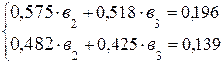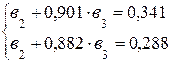 Как и в предыдущем случае, разделим каждый член каждого уравнения этой системы на соответствующие коэффициенты при В результате этой процедуры (деления) получим новую систему, состоящую из двух уравнений с двумя неизвестными, в которой коэффициенты при