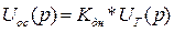 Рис.1.4. Функциональная схема усилитель рассогласования. Усилитель рассогласования может описываться пропорциональным или инерционным звеном. Так как по условию, для усилителя рассогласования заданы постоянная времени Тур и коэффициент передачи Кур , следовательно, усилитель рассогласования описывается инерционным звеном, и имеет уравнение движения вида: Запишем полученное уравнение движения в операционной форме: Преобразуем полученное уравнение: Полная структурная схема усилителя рассогласования: представлена на рисунке 1.5.