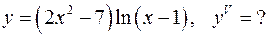 | Задача 18 . Найти производную указанного порядка. 18.1. y'= 4xln(x-1)+(2x2 -7)/(x-1) y''= 4ln(x-1)+ 4x/(x-1) + 4x(x-1)-2x2 +7 = 4ln(x-1) + 6x2 -8x+7 (x-1)2 (x-1)2 y'''= 4/(x-1) + (12x-8)(x-1)2 -2(x-1)( 6x2 -8x+7 ) = 4x2 -12x-2 (x-1)4 (x-1)3 y''''= (8x-12)(x-1)3 -3(x-1)2 (4x2 -12x-2) = -4x2 +16x+18 (x-1)6 (x-1)4 y'''''= (-8x+16)(x-1)4 -4(x-1)3 (-4x2 +16x+18) = 8x2 -40x-88 (x-1)8 (x-1)5 18.2. y'= -2xln2 x + 2lnx(3-x2 ) x y''= -2ln2 x-4xlnx +-4x2 lnx+2(3-x2 )-2(3-x2 )lnx = x x2 = -2ln2 x–4lnx - 2x2 lnx+6lnx+2x2 -6 x2 y'''= -4lnx – 4/x – (4xlnx+2x+6/x+4x)x2 -2x(2x2 lnx+6lnx+2x2 -6) = x x4 = 12lnx-4x2 lnx-6x2 -18 x3 18.3. y'= cosx2 -2x2 sinx2 y''= -2xsinx2 -4xsinx2 -4x3 cosx2 = -6xsinx2 – 4x3 cosx2 y'''= -6sinx2 -12x2 cosx2 -12x2 cosx2 +8x4 sinx2 = 8x4 sinx2 -6sinx2 -24x2 cosx2 18.4. y'= √(x-1)/(x-1) – ln(x-1)/2√(x-1) = 2-ln(x-1) x-1 2(x-1)3/2 y''= -2√(x-1)-3√(x-1)(2-ln(x-1)) = 3√(x-1)ln(x-1)-8√(x-1) 4(x-1)3 4(x-1)3 y'''=((3ln(x-1))/(2√(x-1))+3√(x-1)/(x-1)-8/2√(x-1))(x-1)3 -3(x-1)2 (3√(x-1)ln(x-1)-8√(x-1)) = 4(x-1)6 = 46√(x-1)-15√(x-1)ln(x-1) 8(x-1)4 18.5. y'= x2 /lnx-3x2 log2 x = 1-3ln2log2 x x6 ln2 x4 ln2 y''= -3x3 -4x3 (1-3ln2log2 x) = 12ln2log2 x-7 x8 ln2 x5 ln2 y'''= 12x4 +5x4 (12ln2log2 x-7) = 60ln2log2 x-23 x10 ln2 x6 ln2 18.6. y'= 12x2 e2x+1 +2(4x3 +5)e2x+1 = (8x3 +12x2 +10)e2x+1 y''= (24x2 +24x) e2x+1 +2(8x3 +12x2 +10)e2x+1 =(16x3 +48x2 +24x+20) e2x+1 y'''= (48x2 +96x+24)e2x+1 +2(16x3 +48x2 +24x+20)e2x+1 = 16(2x3 +9x2 +9x+4)e2x+1 y''''= 16((6x2 +18x+9)e2x+1 +2(2x3 +9x2 +9x+4)e2x+1 )= 16(6x3 +24x2 +36x+17)e2x+1 y'''''= 16((18x2 +48x+36)e2x+1 +2(6x3 +24x2 +36x+17)e2x+1 )= 16(12x3 +72x2 +120x+70)e2x+1 18.7. y'= 2xsin(5x-3)+5x2 cos(5x-3) y''= 2sin(5x-3)+10xcos(5x-3)+10xcos(5x-3)-25x2 sin(5x-3) = 2sin(5x-3)+20xcos(5x-3)- -25x2 sin(5x-3) y'''= 10cos(5x-3)+20cos(5x-3)-100xsin(5x-3)-50xsin(5x-3)-125x2 sin(5x-3)= 30cos(5x-3)- -150xsin(5x-3)-125x2 sin(5x-3) 18.8. y'= x-2xlnx = 1-2lnx x4 x3 y''= -2x2 -3x2 (1-2lnx) = -5+6lnx x6 x4 y'''= 6x3 -4x3 (6lnx-5) = 26-24lnx x8 x5 y''''= -24x4 -5x4 (26-24lnx) = 120lnx-154 x10 x6 18.9. y'= 2ln2 x+2lnx(2x+3) x y''= 4lnx/x+ 2(2x+3)+4xlnx-4xlnx-6lnx = 4xlnx+4x+6-6lnx x2 x2 y'''= (4lnx+8-6/x)x2 -2x(4xlnx+4x+6-6lnx) = 12lnx-4xlnx-18 x4 x3 18.10. y'= 2xarctgx+1 y''= 2arctgx+2x/(1+x2 ) y'''= 2/(1+x2 )+ 2(1+x2 )-4x2 = 4/(1+x2 )2 (1+x2 )2 18.11. y'= x2 -3x2 lnx = 1-3lnx x6 x4 y''= -3x3 -4x3 (1-3lnx) = -7+12lnx x8 x5 y'''= 12x4 -5x4 (12lnx-7) = -23-60lnx x10 x6 y''''= -60x5 +6x5 (60lnx+23) = 360lnx+78 x12 x7 18.12. y'= 4*2-x -(4x+3)2-x lnx y''= -4ln2*2-x -4ln2*2-x +(4x+1)ln2 2*2-x = 2-x ln2(4xln2+ln2-8) y'''= -2-x ln2 2(4xln2+ln2-8)+4*2-x ln2 2= 2-x ln2 2(12-4xln2-ln2) y''''= -2-x ln3 2(12-4xln2-ln2)-4*2-x ln3 2= 2-x ln3 2(4xln2+ln2-16) y'''= -2-x ln4 2(4xln2+ln2-16)+4*2-x ln4 2= 2-x ln4 2(ln2-4xln2-12) 18.13. y'= -2e1-2x sin(2+3x)+3e1-2x cos(2+3x)= e1-2x (3cos(2+3x)-2sin(2+3x)) y''= -2e1-2x (3cos(2+3x)-2sin(2+3x))+e1-2x (-9sin(2+3x)-6cos(2+3x))= e1-2x (-12cos(2+3x)-5sin(2+3x)) y'''= -2e1-2x (-12cos(2+3x)-5sin(2+3x))-e1-2x (-36sin(2+3x)+15cos(2+3x))= e1-2x (46cos(2+3x)+9sin(2+3x)) y''''= -2e1-2x (46cos(2+3x)+9sin(2+3x))+e1-2x (-27sin(2+3x)+138cos(2+3x))= e1-2x (120cos(2+3x)-119sin(2+3x)) 18.14. y'= 1-ln(3+x) (3+x)2 y''= -(3+x)-2(3+x)(1-ln(3+x)) = -3+2ln(3+x) (3+x)4 (3+x)3 y'''= 2(3+x)2 -3(3+x)2 (2ln(3+x)-3) = 11-6ln(3+x) (3+x)6 (3+x)4 18.15. y'= 6x2cosx-2x3 sinx-sinx y''= 12xcosx-12x2 sinx-2x3 cosx-cosx y'''= 12cosx-36xsinx-18x2 cosx+2x3 sinx+sinx y''''= 2x3 cosx+18x2 sinx+6xsinx+cosx-48sinx-72xcosx y'''''= 24x2 cosx-2x3 sinx+108xsinx+6xcosx+5sinx-120cosx 18.16. y'= 2xln(x-3)+x2 +3 x-3 y''= 2ln(x-3) + 2x/(x-3) + 2x2 -6x-x2 -3 = 2ln(x-3) + 3x2 -12x-3 (x-3)2 (x-3)2 y'''= 2/(x-3) + (6x-12)(x-3)-2(x-3)( 3x2 -12x-3) = -4x2 +18x+12 (x-3)4 (x-3)3 y''''= (-8x+18)(x-3)3 -2(x-3)2 (-4x2 +18x+12) = 6x-78 (x-3)6 (x-3)4 18.17. y'= 1/2*e(x-1)/2 (1-x-x2 )+ e(x-1)/2 (-1-2x)= 1/2* e(x-1)/2 (-1-5x-x2 ) y''= 1/4*e(x-1)/2 (-1-5x-x2 )+ 1/2*e(x-1)/2 (-5-2x)= 1/4* e(x-1)/2 (-11-9x-x2 ) y'''= 1/8*e(x-1)/2 (-11-9x-x2 )+ 1/4*e(x-1)/2 (-9-2x)= 1/8* e(x-1)/2 (-29-13x-x2 ) y''''= 1/16*e(x-1)/2 (-29-13x-x2 )+ 1/8*e(x-1)/2 (-13-2x)= 1/16* e(x-1)/2 (-55-17x-x2 ) 18.18. y'= 2xcos2x+sin2x x2 y''= (2cos2x-4xsin2x+cos2x)x2 -2x(2xcos2x+sin2x) = -xcos2x-4x2 sin2x-2sin2x x4 x3 y'''= (-cos2x+2xsin2x-8xsin2x-8x2 cos2x-4cos2x)x3 -3x2 (-xcos2x-4x2 sin2x-2sin2x) = x6 = 6x2 sin2x-8x2 cos2x-2xcos2x+6sin2x x4 18.19. y'= ln(x+4) +(x+7)/(x+4) y''= x+4+x+4-x-7 = x+1 (x+4)2 (x+4)2 y'''= (x+4)2 -2(x+1)(x+4) = 2-x (x+4)4 (x+4)3 y''''= -(x+4)3 -3(x+4)2 (2-x) = 2x-10 (x+4)6 (x+4)4 y'''''= 2(x+4)4 -4(x+4)3 (2x-10) = 48-6x (x+4)8 (x+4)5 18.20. y'= 3*3-x -(3x-7)3-x ln3= 3-x (3-3xln3+7ln3) y''= -3-x ln3(3-3xln3+7ln3)+3*3-x ln3= 3-x ln2 3(7-3x) y'''= -3-x ln3 3(7-3x)-3*3-x ln2 3= 3-x ln2 3(3xln3-7ln3-3) y'''= -3-x ln3 3(3xln3-7ln3-3)+3*3-x ln3 3= 3-x ln3 3(3xln3-7ln3+6) 18.21. y'= 1-2ln(2x+5) (2x+5)2 y''= -2(2x+5)-2(2x+5)( 1-2ln(2x+5)) = -4+4ln(2x+5) (2x+5)4 (2x+5)3 y'''= 4(2x+5)2 -3(2x+5)2 (4ln(2x+5)-4) = -8-12ln(2x+5) (2x+5)6 (2x+5)4 18.22. y'= 1/2*ex/2 sin2x+2ex/2 cos2x= ex/2 /2*(sin2x+4cos2x) y''= ex/2 /4*(sin2x+4cos2x)+ ex/2 /2(2cos2x-8sin2x)= ex/2 /4*(-15sin2x+8cos2x) y'''= ex/2 /8*(-15sin2x+8cos2x)+ ex/2 /4(-16cos2x-30sin2x)= ex/2 /8*(-45sin2x-24cos2x) y''''= ex/2 /16*(-45sin2x-24cos2x)+ ex/2 /8(-90cos2x+48sin2x)= ex/2 /16*(51sin2x-204cos2x) 18.23. y'= x4 -5x4 lnx = 1-5lnx x5 x y''= -5-1+5lnx = 5lnx-6 x2 x2 y'''= 5x-2x(5lnx-6) = 17-10lnx x4 x3 18.24. y'= ln(1-3x)-3x/(1-3x) y''= 1/(1-3x) – 3(1-3x)+9x = -3x-2 (1-3x)2 (1-3x)2 y'''= -3(1-3x)2 +2(1-3x)(3x+2) = 15x+1 (1-3x)4 (1-3x)3 y''''= 15(1-3x)3 -3(1-3x)2 (15x+1) = 12-90x (1-3x)6 (1-3x)4 18.25. y'= 3e3x+2 (x2 +3x+1)+e3x+2 (2x+3)= e3x+2 (3x2 +11x+6) y''= 3e3x+2 (3x2 +11x+6)+e3x+2 (6x+11)= e3x+2 (9x2 +39x+29) y'''= 3e3x+2 (9x2 +39x+29)+e3x+2 (18x+39)= e3x+2 (27x2 +135x+126) y''''= 3e3x+2 (27x2 +135x+126)+e3x+2 (54x+135)= e3x+2 (81x2 +459x+513) y'''''= 3e3x+2 (81x2 +459x+513)+e3x+2 (162x+459)= e3