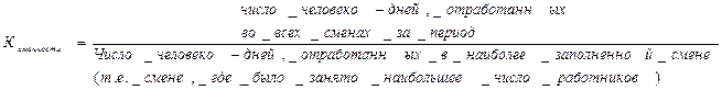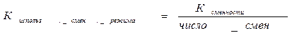 II. Показатели использования оборудования по времени. 1. Коэффициенты сменности установленного и фактически работавшего оборудования. Показывают, сколько смен, в среднем, приходится на каждую единицу установленного или работавшего оборудования. Для их расчёта количество отработанных станкосмен делится на количество станкодней установленного или работавшего оборудования. 2. Коэффициент экстенсивной нагрузки: