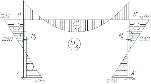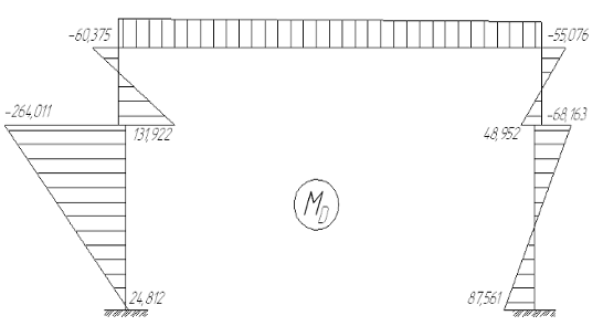 Рис. 3. Эпюры изгибающих моментов от постоянной нагрузки. Аналитическим способом МС и МD равен