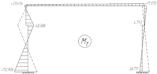 Рис. 5. Эпюры изгибающих моментов от крановой нагрузки.