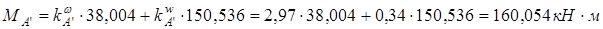 Определяем изгибающие моменты в сечениях А и В от постоянной нагрузки