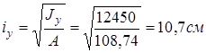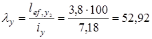 Определяем гибкость стержня в плоскости и из плоскости рамы: