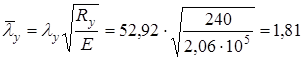 Проверяем устойчивость стержня колонны из плоскости действия момента по п.5.30(1)
