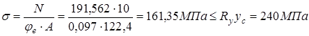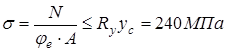 эксцентриситет продольной силы, Ry = 240 МПа по табл.50(1).