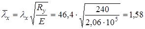 По сортаменту подбираем двутавр 40Ш1 с характеристиками: А = 122,4 см2; Jx = 34360 см4; Wx = 1771 см3; ix = 16,79 см; iy = 7,18 см; h = 388 мм; tw = 9,5 мм; br = 300 мм; tf = 14 мм; Определяем гибкость стержня в плоскости и из плоскости рамы: