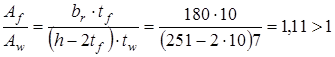 По сортаменту подбираем два двутавра 26Ш1 с характеристиками: А = 54,37 см2; Jx = 6225 см4; Wx =496 см3; ix = 10,7 см; iy = 4,23 см; h = 251 мм; tw = 7 мм; br = 180 мм; tf = 10 мм; Характеристика сечения: