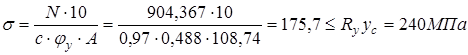 где y = 1090 мм – расстояние от оси анкерных болтов до центра тяжести сжатой зоны эпюры напряжений. Требуемая площадь сечения нетто одного анкерного болта: