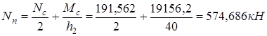– длина сминаемой поверхности; В связи с тем, что подкрановая балка не рассчитывается, принимаем bd и t по своему усмотрению. bd = 20 см – ширина опорного ребра подкрановой балки; t = 2 см – толщина опорного листа подкрановой ступени; Rp = 336 МПа – расчётное сопротивление смятию торцевой поверхности по т.52(1). Принимаем ttr = 10 мм. Длина шва крепления вертикального ребра траверсы к стенке траверсы определяется по усилиям в сечении С. МС = -168,156 кН·м, NC = 191,562 кН. Усилие во внутренней полке верхней части колонны равно: