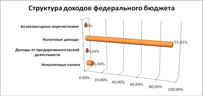 Доходы бюджета - часть централизованных финансовых ресурсов государства, необходимых для выполнения его функций. Они выражают экономические отношения, возникающие в процессе формирования фондов денежных средств, и поступают в распоряжение органов власти. Основную часть доходов занимают конечно налоговые доходы, в 2010 году они составляют 93,92 % всех доходов, на неналоговые приходится 6,04% и лишь 0,04 % безвозмездные поступления. Как видно из структуры налоговых доходов ,основную часть их (как и основную долю доходов бюджета в целом) составляют налоги на торговлю и внешнеэкономические операции ( 38,94 %) и НДС (30,90 %) . На третьем месте - платежи за пользование природными ресурсами ( 16,52 %) и далее в разы меньше доходы от акцизов, налога на прибыль, ЕСН и госпошлина. Более половины неналоговых доходов (62,87 %) , но лишь 3,74 % всех доходов бюджета составляют налоги от имущества, находящегося в государственной и муниципальной собственности. Второй по сумме доходов в этой группе - это доходы от предоставления платных услуг (1,75 %), наименее существенные это доходы от продажи материальных и нематериальных активов, штрафы, санкции, прочие неналоговые доходы. Доходы от предпринимательской деятельности составляют все лишь 0,04%, доходы от безвозмездных перечислений в 2010 не предусмотрены. В целом, доходы бюджета в сравнении с предыдущим годом снизились – в 2009 году они составили 7336,8 млрд.руб., в 2010 7062,4 млрд. руб, т.е. доходы снизились на более чем на 3,7 %. Причины, в результате которых поступления в текущем году будут меньше доходов 2009 года, можно условно разделить на три группы: первая связана с реформой социальных платежей и заменой единого социального налога страховыми взносами, поступающими напрямую во внебюджетные фонды, вторая - с сужением налоговых баз по основным источников доходов в ВВП, а третья - с тем фактом, что в 2009 году в федеральный бюджет были мобилизованы временно свободные средства госкорпораций и другие разовые поступления. Однако, «доходы федерального бюджета в конце этого года будут выше на 700 миллиардов рублей, чем планировалось. Такие расчеты озвучила заместитель министра финансов Татьяна Нестеренко. Таким образом, дополнительные доходы могут частично компенсировать бюджетный дефицит. Столь дорогой подарок госказне принесли растущие нефтяные цены, а также прибыль Центробанка за 2009 год в размере 189 миллиардов рублей.» («Российская газета» , 5190 (111) от 25 июля 2010 г.) Ряд мер по повышению доходов в бюджет предлагается Счетной палатой РФ: легализация доходов от экономической деятельности и наведение порядка в системе учета и взимания налогов, таможенных и других платежей, поступающих от субъектов экономической деятельности, получение дополнительных доходов за счет усиления контроля за трансфертным ценообразованием, получение дополнительных доходов в результате повышения результативности налогового контроля (возможно необходимо повысить прозрачность процесса ценообразования и предсказуемость цен и тарифов на производимую продукцию и услуги, обеспечить достоверный учет финансово-хозяйственной деятельности организаций, прежде всего инфраструктурных монополий), дополнительные поступления в бюджетную систему могут быть получены за счет взыскания просроченной задолженности по бюджетным ссудам и бюджетным кредитам, а также проср