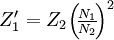 Таким чином отримуємо, що при збільшенні напруги на кінцях вторинної обмотки U2 , зменшується потік вторинної ланцюга I2 . Для перетворення опору одного ланцюга в опір іншого, потрібно помножити величину на квадрат відносини. Наприклад, опір Z2 підключено до кінців вторинної обмотки, його наведене значення до первинного кола буде