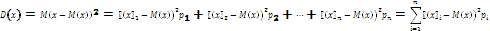 18.Дисперсия дискретной случайной величины. Понятие дисперсии случ.величины вводится для характеристики отклонения данной величины от ее среднего значения.Для этого рассм.понятие отклонения.Пусть х-случ.величина и М(х)-ее мат.ожидание. Отклонением наз.разность между случ.величиной х и ее мат.ожиданием.Теорема: мат.ожидание отклонения=0; M[x-M(x)]=0. Дисперсией или рассеянием дискретной случ.величины х наз.мат.ожидание квадрата отклонения случ.величины от ее мат.ожидания. D(x)=M(x-M(x))2 . Дисперсия случ.величины также имеет закон распределения.Пусть случ.величина х задана законом распределения