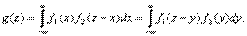 является достаточно трудоемким, то матем.ожидание ф-ции Если возможные значения СВ Х принадлежат интервалу (a;b), то матем.ожидание находят по формуле 38. Функция двух случайных величин.Распределение суммы независимых слагаемых. Если каждой паре возможных значений случайных величин Х и Y соответ-ствует одно возможное значение случайной величины Z , то Z называют функцией двух случайных аргументов X и Y : Z = φ (X , Y ). Рассмотрим в качестве такой функции сумму Х + Y . В некоторых случаях можно найти ее закон распределения, зная законы распределения слагаемых. 1) Если X и Y – дискретные независимые случайные величины, то для определения закона распределения Z = Х + Y нужно найти все возможные значения Z и соответствующие им вероятности. 2) Если X и Y – непрерывные независимые случайные величины, то, если плотность вероятно-сти хотя бы одного из аргументов задана на (-∞, ∞) одной формулой, то плотность суммы g (z ) можно найти по формулам где f 1 (x ), f 2 (y ) – плотности распределения слагаемых. Если возможные значения аргументов неотрицательны, то