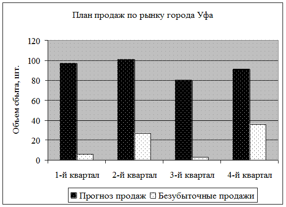 Прогнозный и безубыточный объемы продаж приведены в таблице 14 и на диаграмме 7.