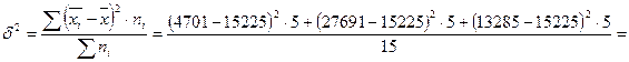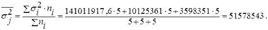 Вычислим межгрупповую дисперсию. Для этого предварительно определим общую среднюю как среднюю взвешенную из групповых средних: