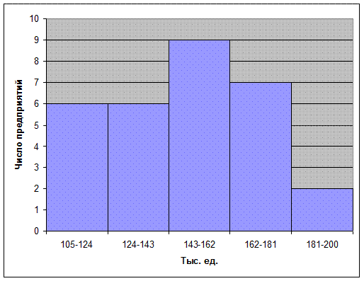 Размер интервала определим по формуле: в =(Xmax -Xmin )/n, где Xmax, Xmin – максимальное и минимальное значения уровней ряда динамики; n – число групп. Определим размер интервала: d = (200-105)/5 = 19 руб. Таблица 2.3. Статистический ряд распределения организаций по производительности труда
