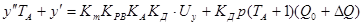 Тогда, исходя из (2.12), система уравнений в форме Коши примет вид: 2.4 Математическая модель системы управления тепловым режимом на станцииСистему управления тепловым режимом на платформе станции (рис.2.1) можно разделить на две подсистемы: система управления расходом воздуха ВТЗ (САУ ВТЗ) и система управления расходом воздуха управляемых шиберов (САУ УШ). Передаточная функция САУ ВТЗ имеет вид:
