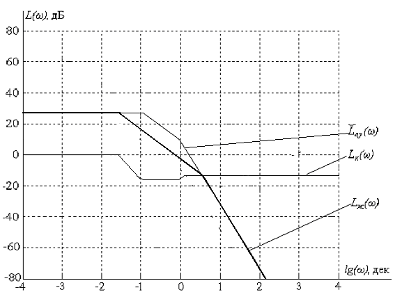 Рис.3.1. Логарифмические амлитудно - частотные характеристики Затем по