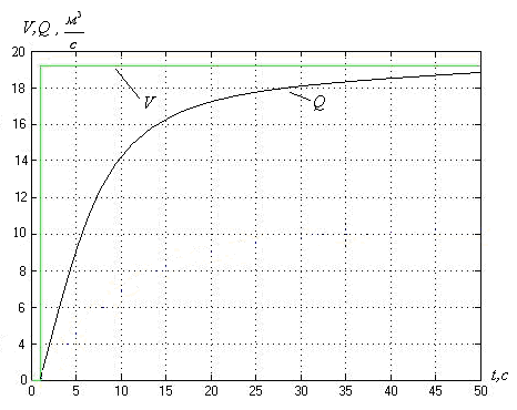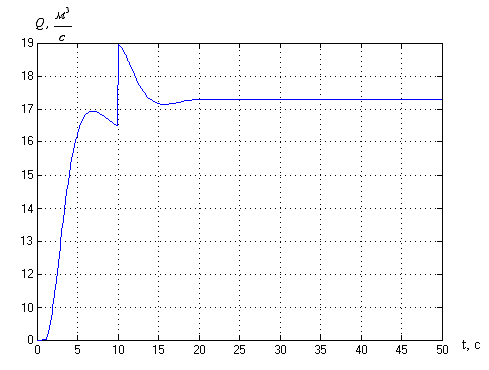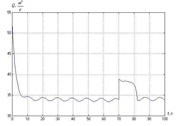 Рис.3.15 Управляющее воздействие 3.2 Расчет регулятора САУ УШ3.2.1 Постановка задачи синтеза регулятора САУ УШЦелью функционирования синтезируемой системы управления является поддержание необходимого расхода воздуха в тоннеле метрополитена. Требования, предъявляемые к качеству переходных процессов:
